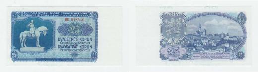 25 Koruna 1953, sér. BE (Moskva), BHK.90aA, He.102a1, "neperf."