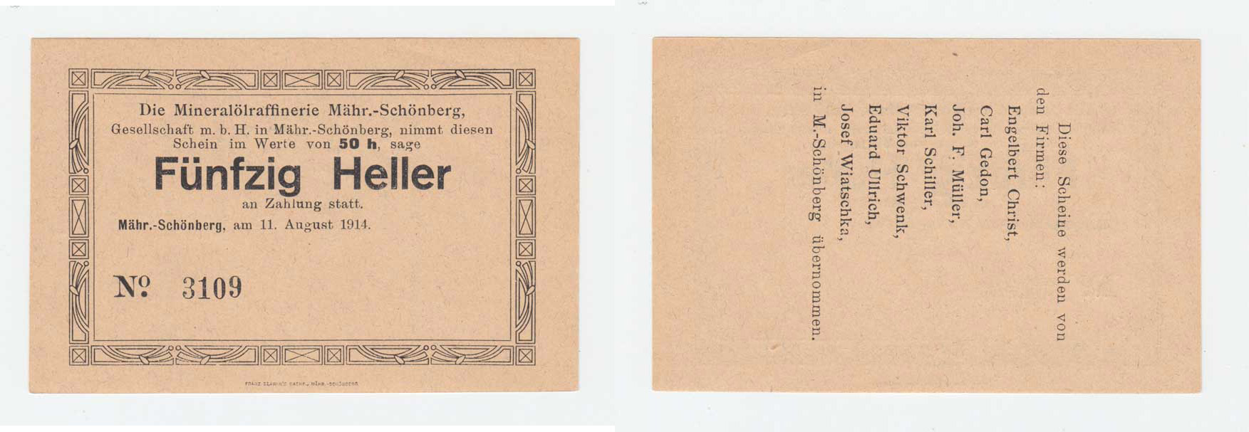Mähr.Schönberg (Šumperk), 1 Koruna 1919, D-H.120/2.2f, H-H.132/1.2.1n
