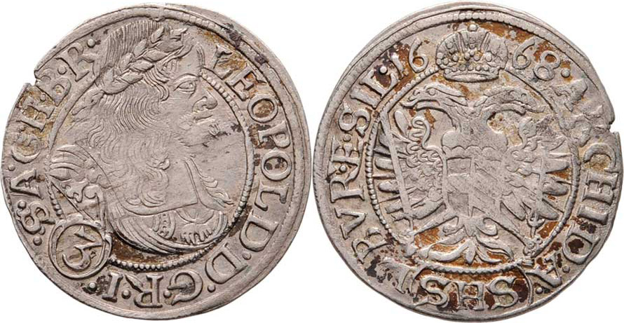 3 Krejcar 1668 SHS, Vratislav-Hammerschmidt, dělení opisů: "...R.I.(3).S.A.../ARCHID.A.(SHS)D.BVR....", MKČ.1619, Nech.738, 1.483g, nep.nedor., pěkná patina