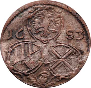 2 Fenik 1683, Vídeň-Mittermayer, Nech.2015, M-A.182, pouze 0.343g, patrně dobové falzum, zvlněný, mírně naprasklý, patina