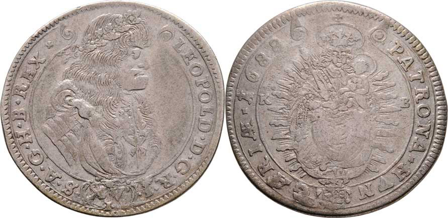 XV Krejcar 1688 KB, Kremnica, Höll.88.3.2, Husz.1427, Nech.1174, 6.156g, nep.nedor., pěkná patina