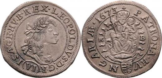 VI Krejcar 1673 KB, Nech.1194, Husz.1450, 3.192g, pěkná patina