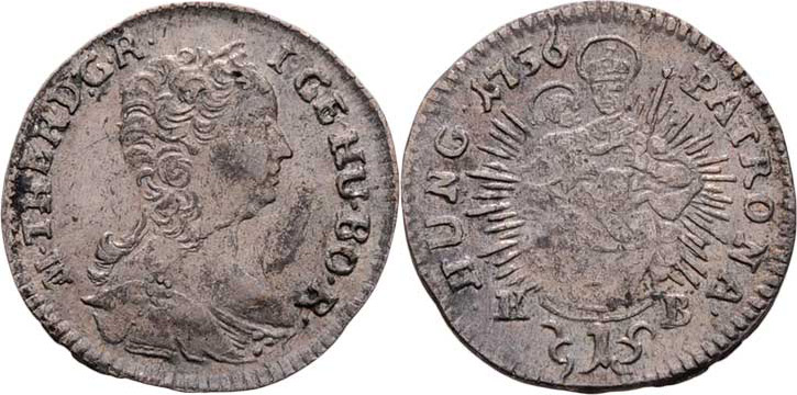 Ag Krejcar 1756 KB, Kremnica, N.86, Husz.1745, 0.747g,, nep.rysky, pěkná patina R!