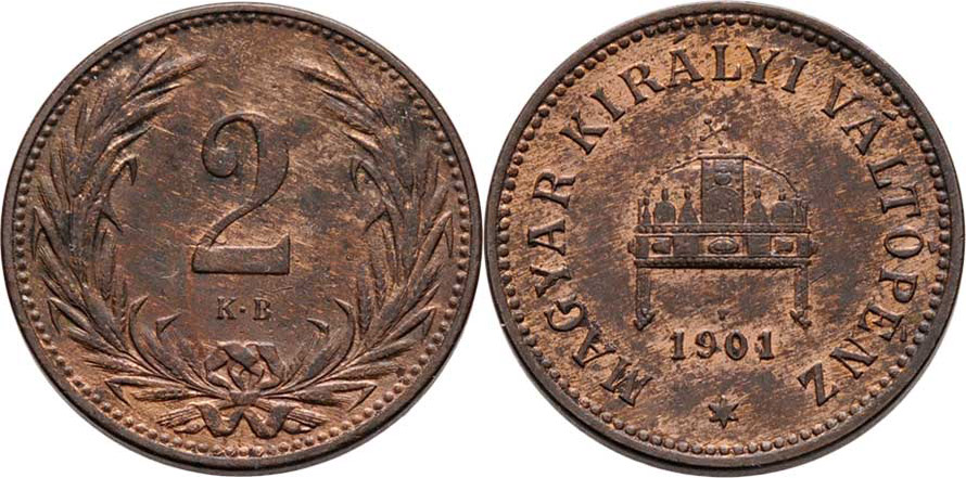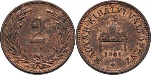2 Haléř 1901 KB, 3.318g, nep.hr., nep.rysky, skvrnky, patina, téměř
