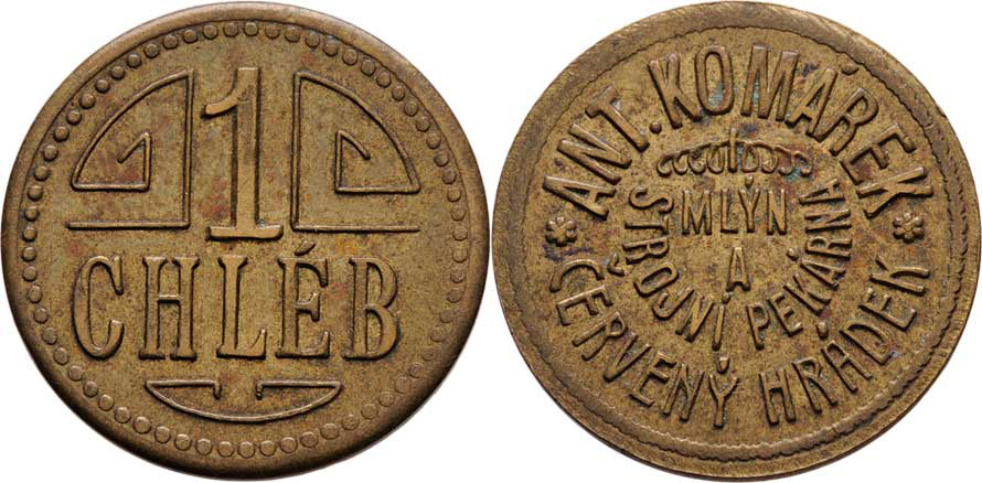 Červený Hrádek - Ant.Komárek - 1 chléb - mosaz 25 mm, pěkná patina
