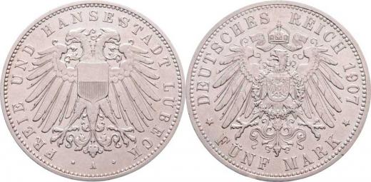 5 Marka 1907 A, KM.213 (Ag900, pouze 10.000 ks), 27.651g, nep.hr., nep.rysky, pěkná patina RR!