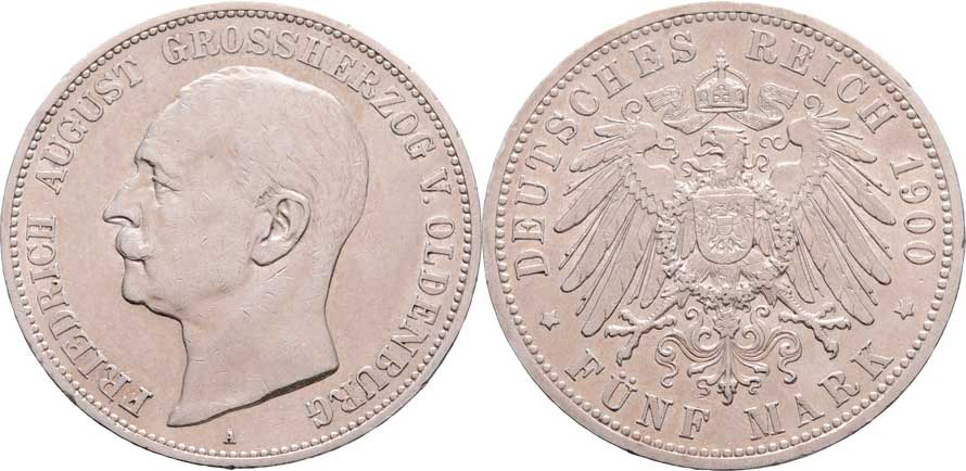 5 Marka 1900 A, KM.203 (Ag900, pouze 20.000 ks), 27.684g, dr.hr., dr.rysky, patina RR!