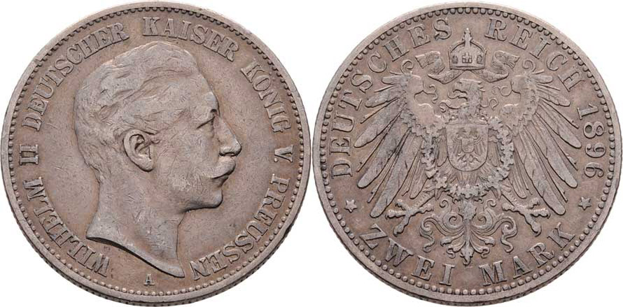 2 Marka 1896 A, Berlín, KM.522 (Ag900), 11.000g, dr.hr., dr.rysky, patina