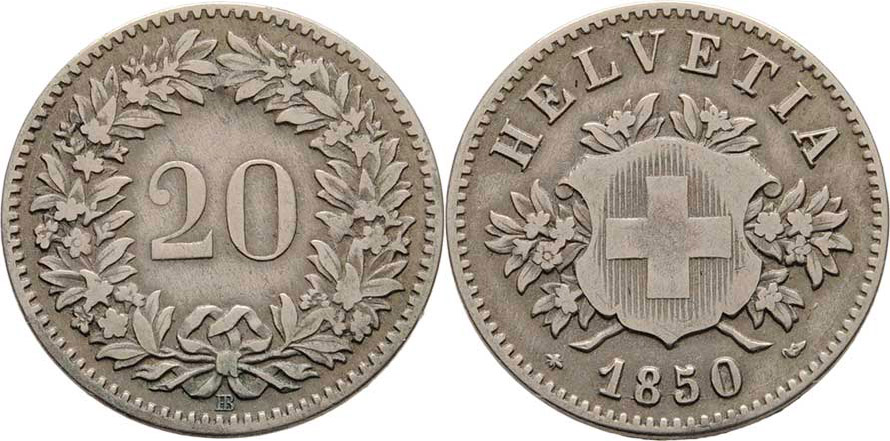 20 Rap 1850 BB, KM.7 (bilon), 3.220g, nep.hr., nep.rysky, pěkná patina R!