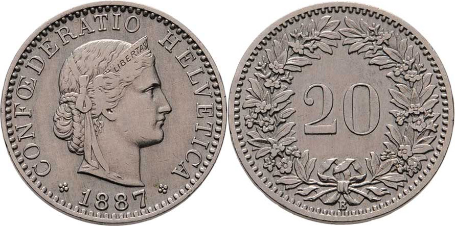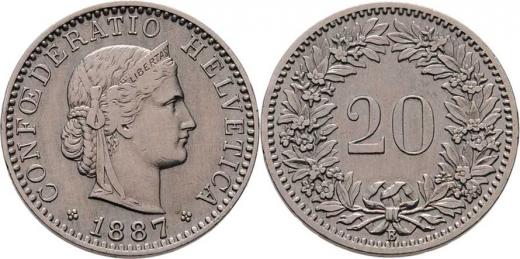 20 Rap 1887 B, KM.29 (Ni), 3.940g, nep.hr., nep.rysky, pěkná patina, téměř R!
