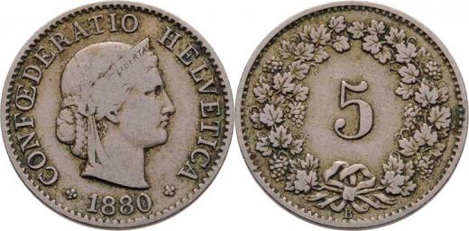 5 Rap 1880 B, KM.26 (CuNi), 1.967g, nep.hr., nep.rysky, pěkná patina R!