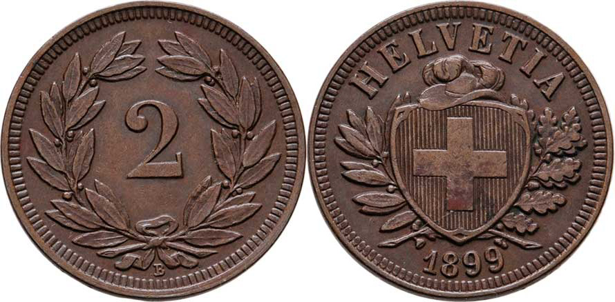2 Rap 1899 B, KM.4 (bronz), 2.489g, nep.hr., nep.rysky, pěkná patina R!