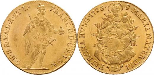 Dukát 1796 bz - s madonou, Kremnica, 3.478g, nep.hr., vlas.rysky, pěkná patina, téměř