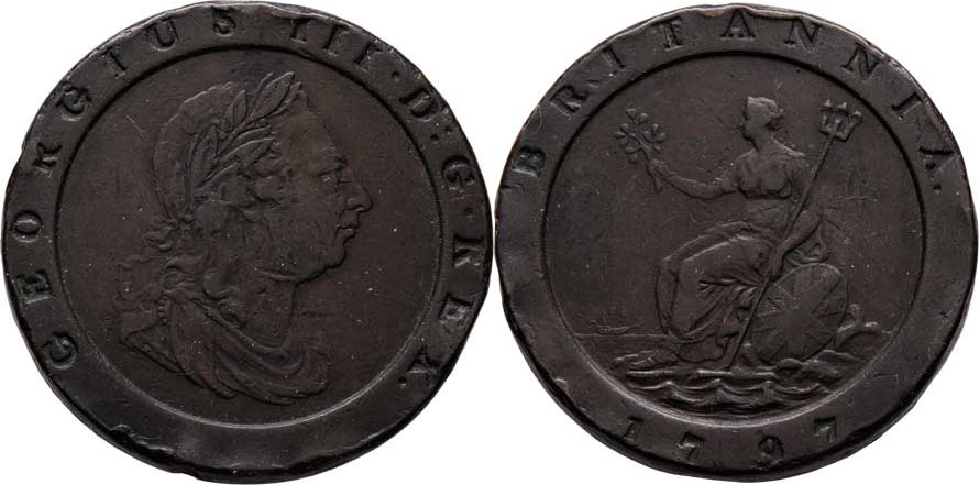 2 Pence 1797, Londýn, SCBC.3776, KM.619 (Cu), 55.706g, velké hrany, dr.rysky, pěkná patina