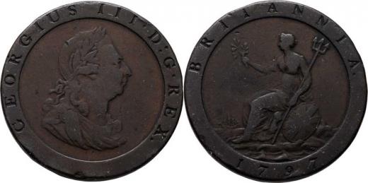 Penny 1797, Londýn, SCBC.3777, KM.618 (Cu), 27.471g, hr., dr.rysky, pěkná patina