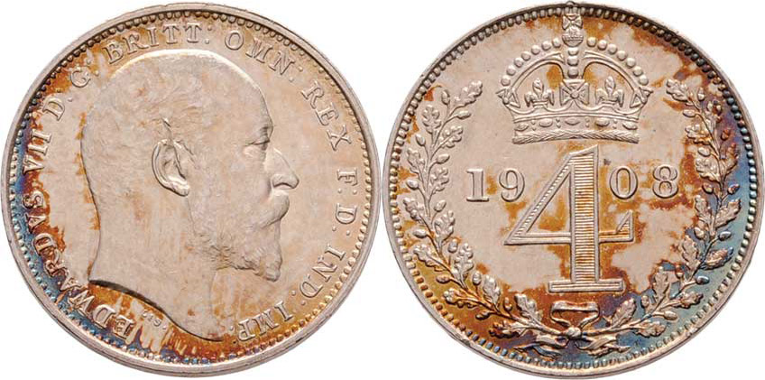 4 Pence 1908 - typ Maundy Sets, Londýn, SCBC.3986, KM.798 (Ag925, pouze 9.929 ks), 1.873g, nep.hr., skvrny R!