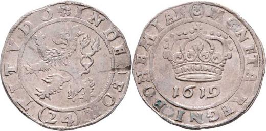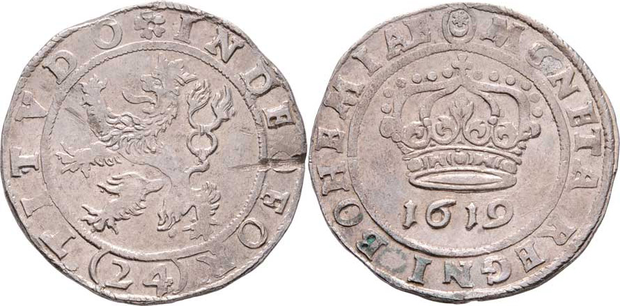24 Krejcar 1619, Praha-Hübmer, J.2a, MKČ.568, 7.528g, dr.vady materiálu, nep.nedor., škr., patina