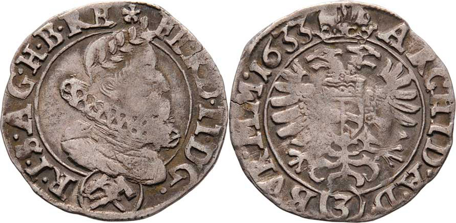 3 Krejcar 1633, K.Hora-Prunz, J.33b, MKČ.810, 1.663g, nep.nedor., nep.dvojráz, pěkná patina