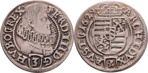 3 Krejcar 1629 PH, Petr Hemma, NŠ.113, MKČ.1335a, 1.526g, pěkná patina