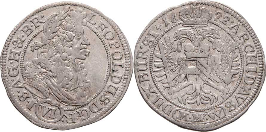 VI Krejcar 1692 MMW, Vratislav-Wackerl, MKČ.1611b, Nech.719, 2.985g, nep.nedor., pěkná patina