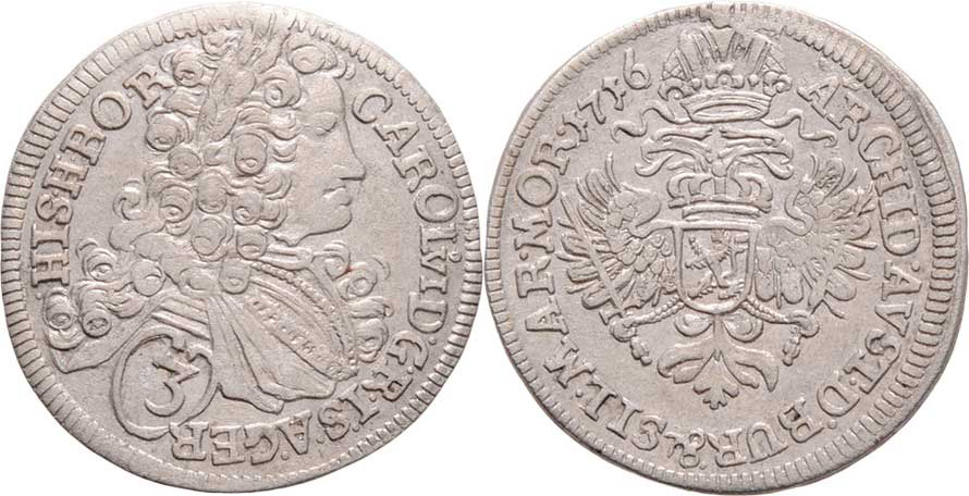 3 Krejcar 1716, Praha-Scharff, J.9a, MKČ.1830, 1.612g, nep.exc., nep.vady razidla, pěkná patina