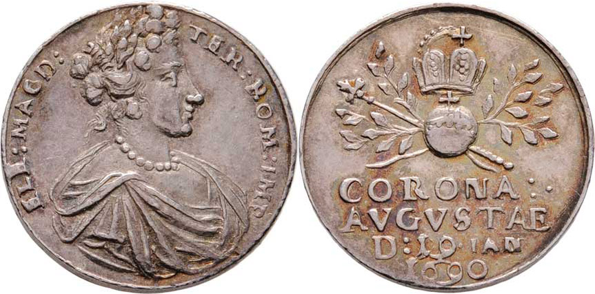 Nesign. - medailka na korunovaci v Augsburgu 1690 - poprsí zprava, opis / koruna, insignie, nápis, Ag 18mm, 3.064g, Nov.H.3a, M.1237, H.2428, pat., téměř