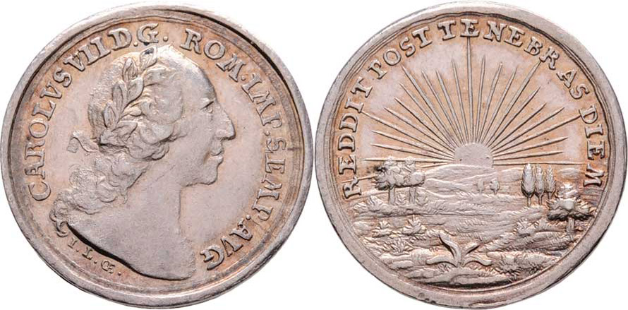 Oexlein - na císařskou korunovaci ve Frankfurtu b.l. - poprsí zprava, opis / slunce nad krajinou, opis, Ag 22mm, 2.523g, Nov.H.1b, nep.rysky, pěkná pat. R!
