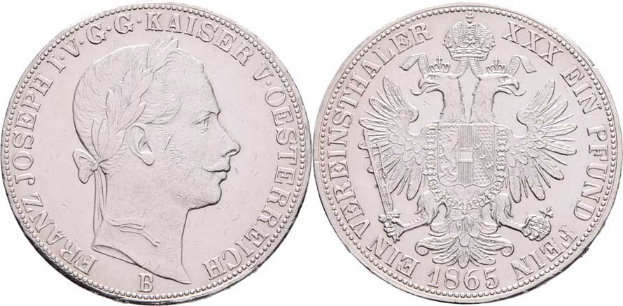 Tolar spolkový 1865 B, 18.485g, nep.hr., dr.rysky R!