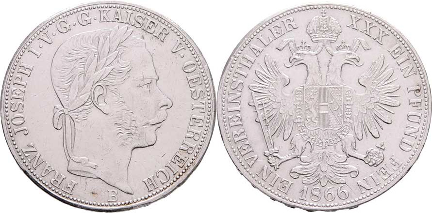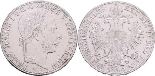 Tolar spolkový 1866 B, 18.391g, dr.hr., dr.rysky R!