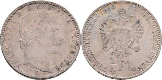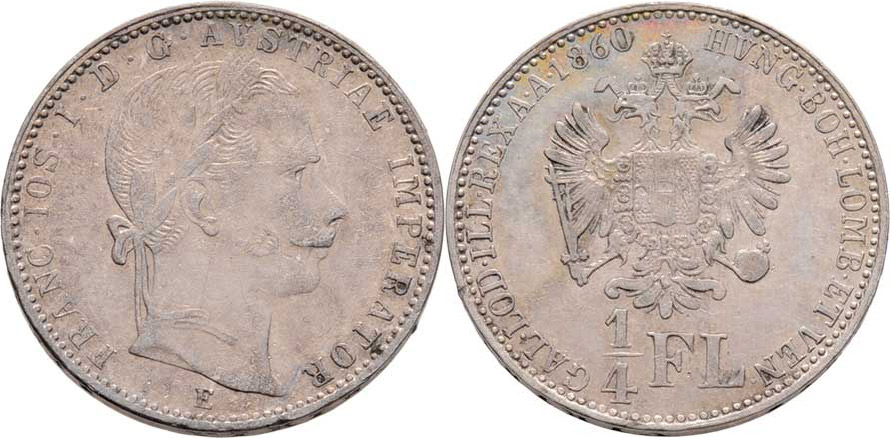 1/4 Zlatník 1860 E, 5.382g, nep.hr., nep.rysky, pěkná patina RR!