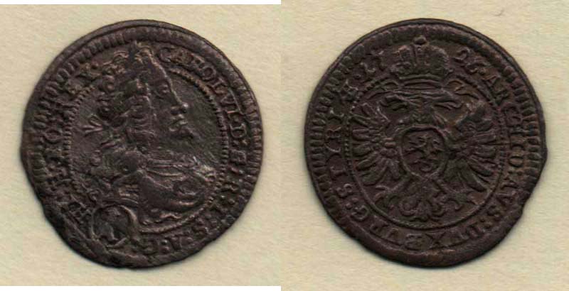 Krejcar 1726, Štýrský Hradec, M-A.226, 0.710g, dr.vady materiálu, nep.nedor., pěkná patina