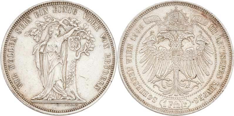 Tolar spolkový 1868 - III. německé spolkové střelby, 16.903g, nep.rysky, téměř R!