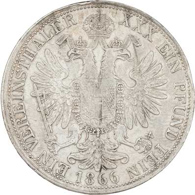 Tolar spolkový 1866 E, 18.479g, dr.hr., škr., patina