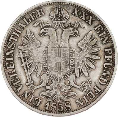Tolar spolkový 1858 M, 18.351g, dr.hr., dr.rysky, pěkná patina R!