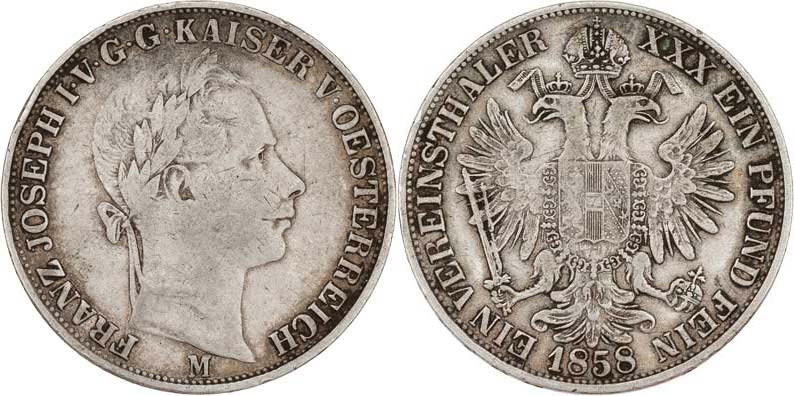 Tolar spolkový 1858 M, 18.351g, dr.hr., dr.rysky, pěkná patina R!
