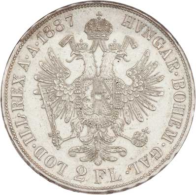 2 Zlatník 1887, 24.778g, dr.hr., nep.rysky, patina, téměř
