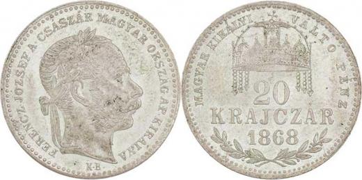 20 Krejcar 1868 KB - dlouhý opis, 2.622g, patina R!