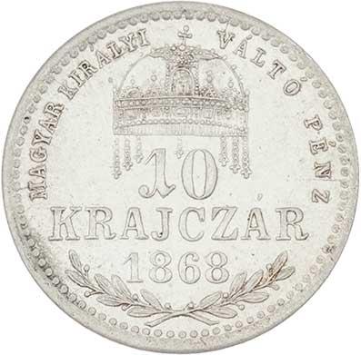 10 Krejcar 1868 KB - dlouhý opis, 1.706g, nep.rys. R!