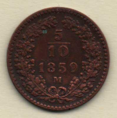 5/10 Krejcaru 1859 M, 1.738g, skvrny, patina R!