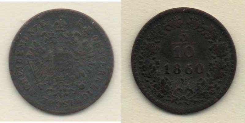 5/10 Krejcaru 1860 V, 1.686g, dr.hr., patina R!