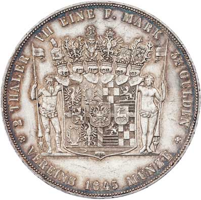 2 Tolar spolkový 1845 A, Cr.23 (pouze 8.600 ks), 37.102g, dr.hr., dr.rysky, pěkná patina, téměř RR!