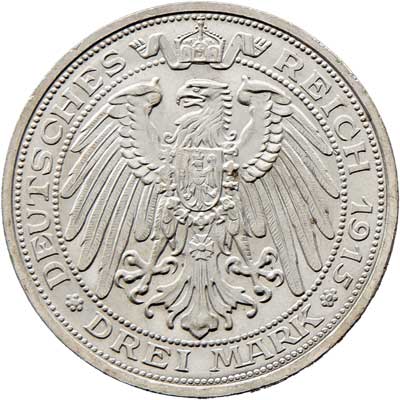 3 Marka 1915 A - jubilejní, KM.340 (pouze 33.000 ks), 16.658g, nep.hr., nep.rysky v aversu R!