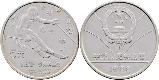 5 Yuan 1988 - ZOH Calgary - lyžování
