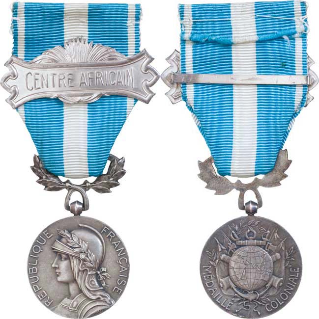 Koloniální pamětní medaile - universální, BB.338n, VFR.6, stuha se štítkem "CENTRE AFRICAIN"