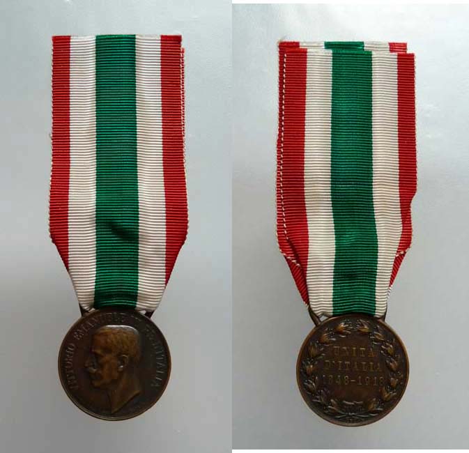 AE pam. medaile Sjednocení Itálie 1848/1918, BB.364, hlava zleva, Sign.v reversu "CBC", původní stuha