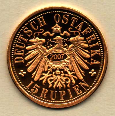 Německá východní Afrika - 15 Rupie 1916/2007 (Au585), 18mm, 2.023g, kapsle