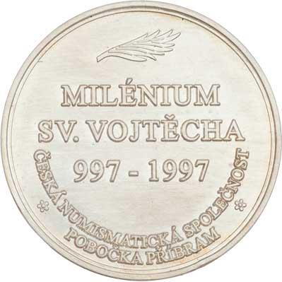 Milenium sv.Vojtěcha 997/1997 - chrám sv.Vojtěcha na Březových horách, znak, nápis / ratolest, písmo, Ag925, 37mm, 27.364g, FM.10, čís.145/200, dr.hr. R!