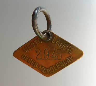 Lysá nad Labem, okr. Mladá Boleslav b.l. - číslo 2945 - mosaz 41x28 mm s původním otvorem pro zavěšení a závěsným kruhem