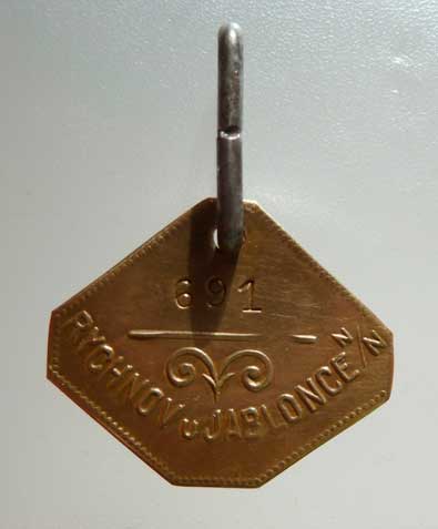 Rychnov u Jablonce n.N. b.l. - číslo 691 - mosaz 30x25 mm s původním otvorem a závěsným kruhem