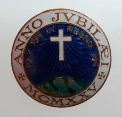 Vatikán 1925 - Jubilejní rok, Sign.Bregonzio-Milano, zlacený smaltovaný 27 mm se zavíracím špendlíkem